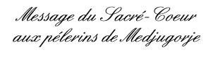 Mes enfants, Je vous le demande, ouvrez votre coeur à l'Amour de Dieu, à Mon Sacré-Coeur, Il vous transformera totalement. Aimez-vous les uns les autres et suivez-Moi.